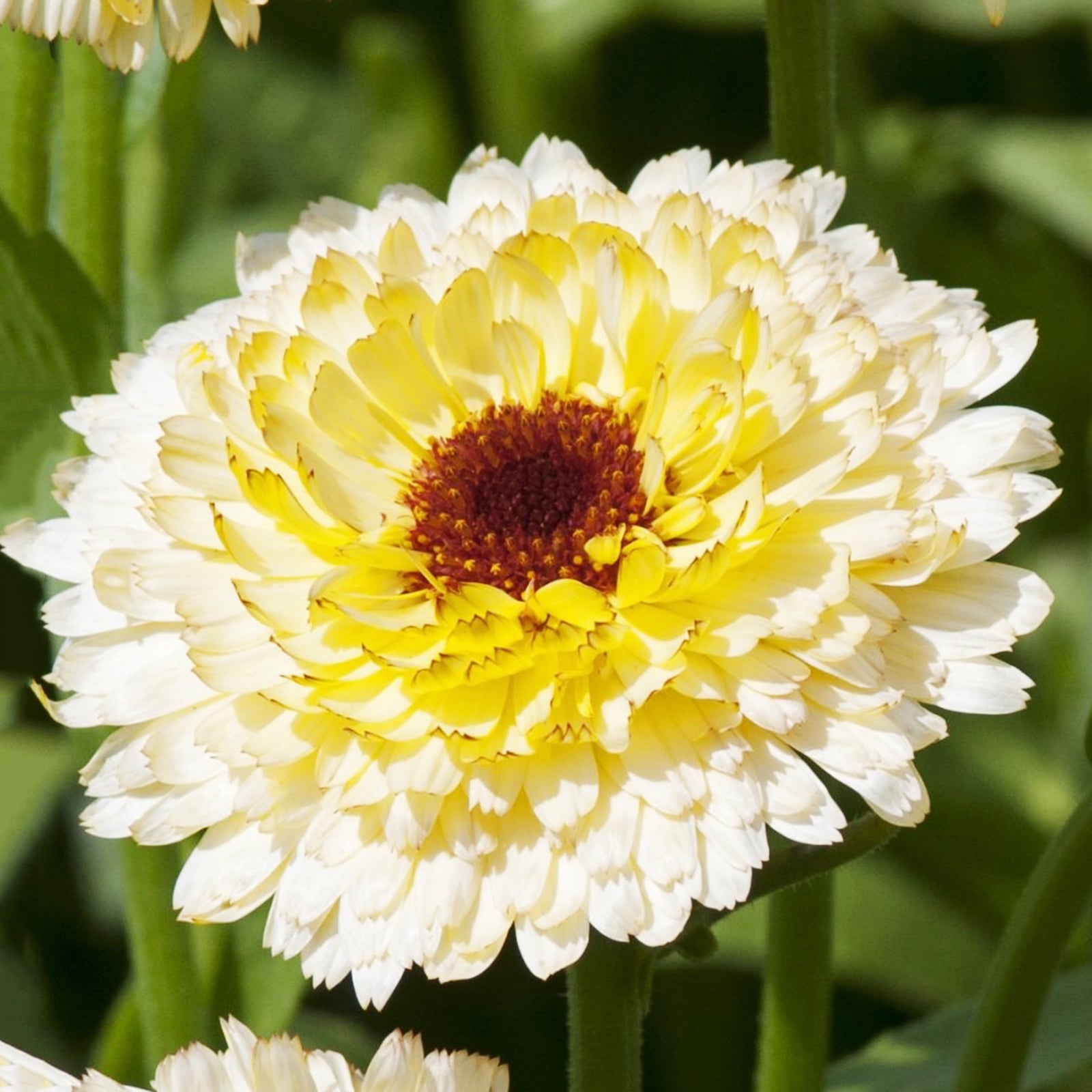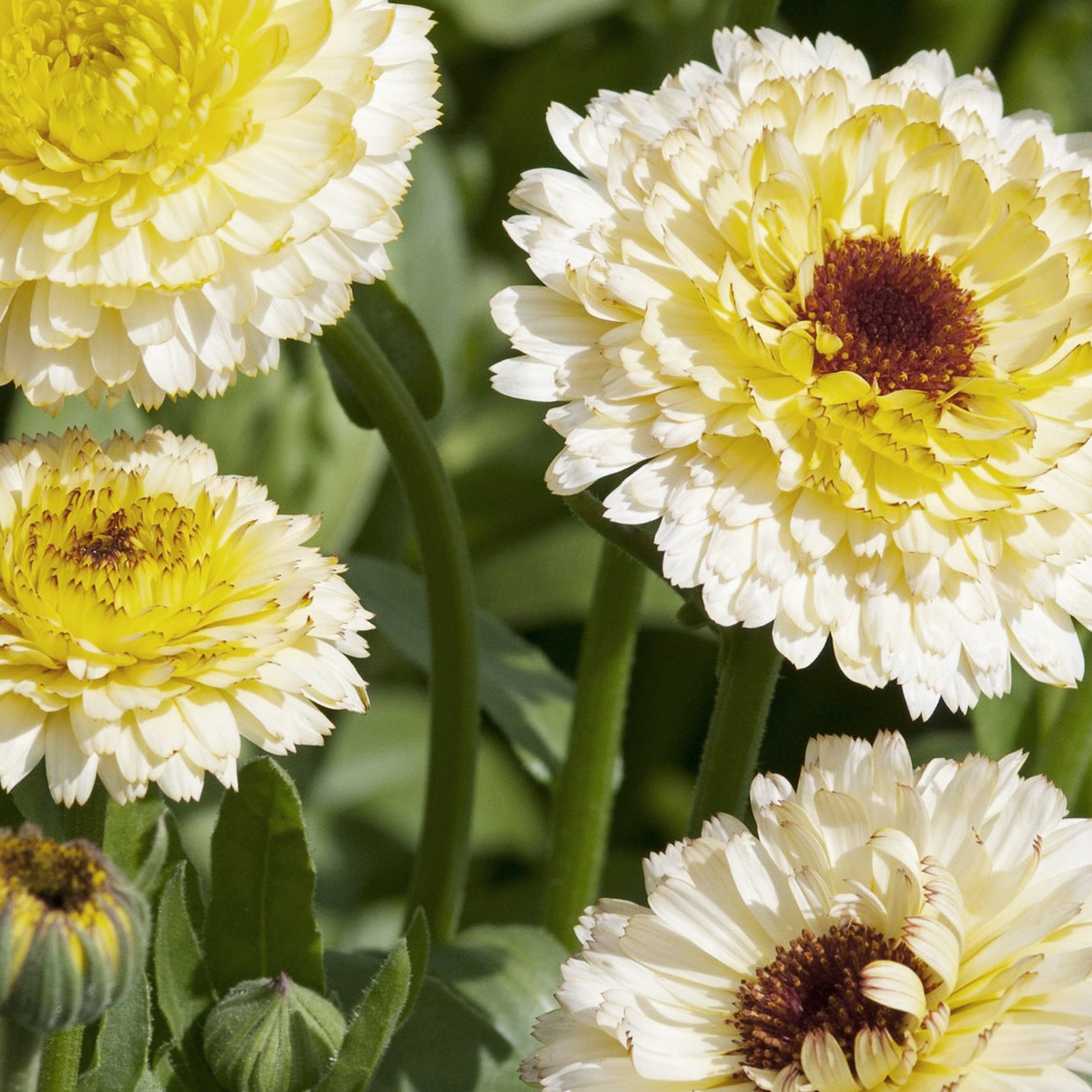 Die Calendula officinalis Ivory Princess ist eine außergewöhnlich elegante Ringelblume mit großen, cremeweißen bis zartgelben Blüten, die sich deutlich von klassischen orangefarbenen Sorten abhebt. Ihre sanfte Farbgebung verleiht Beeten, Rabatten und Kübelpflanzungen eine ruhige, edle Wirkung und macht sie zu einer beliebten Wahl für naturnahe wie auch moderne Gärten.
