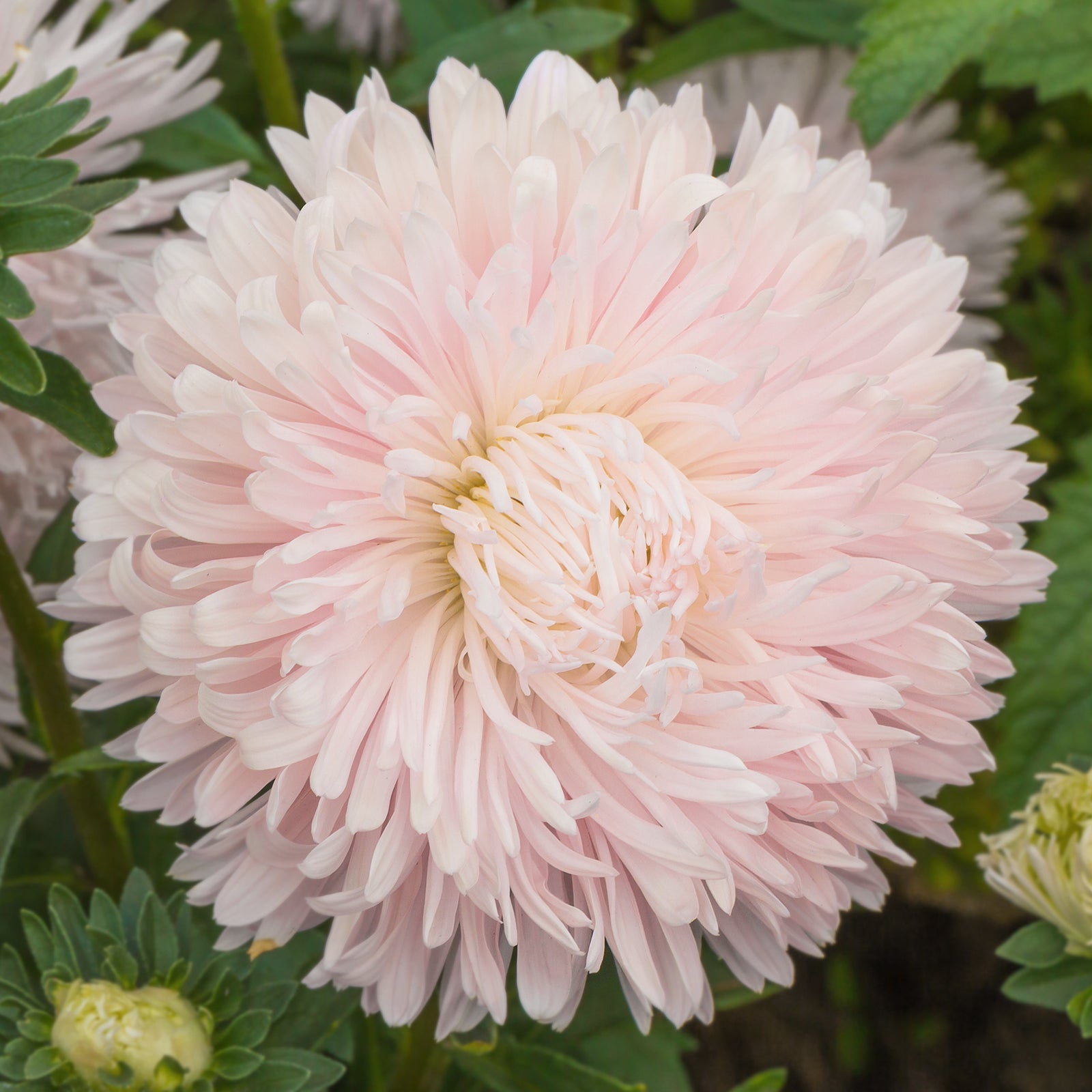 Die Sommeraster King Size Apricot ist eine der Sorten, die man im Garten nicht einfach übersieht. Ihre großen, dicht gefüllten Blüten wirken wie weiche, apricotfarbene Seidenpompons – ein Farbspiel zwischen Blush, Creme und zartem Pfirsichton. Genau diese feine Eleganz macht sie zu einer der beliebtesten Sorten für spätsommerliche Beete und prachtvolle Schnittarrangements.