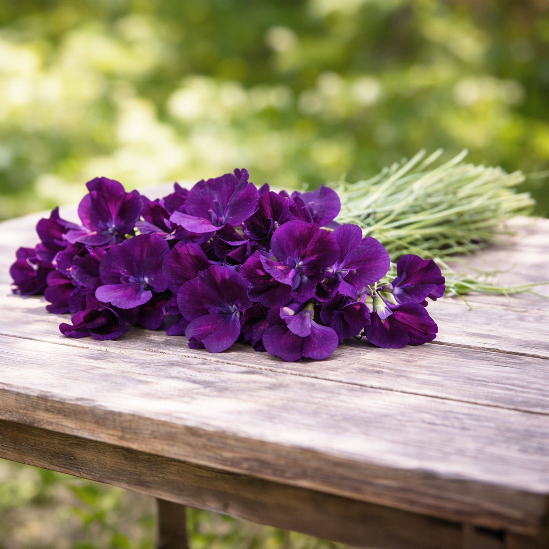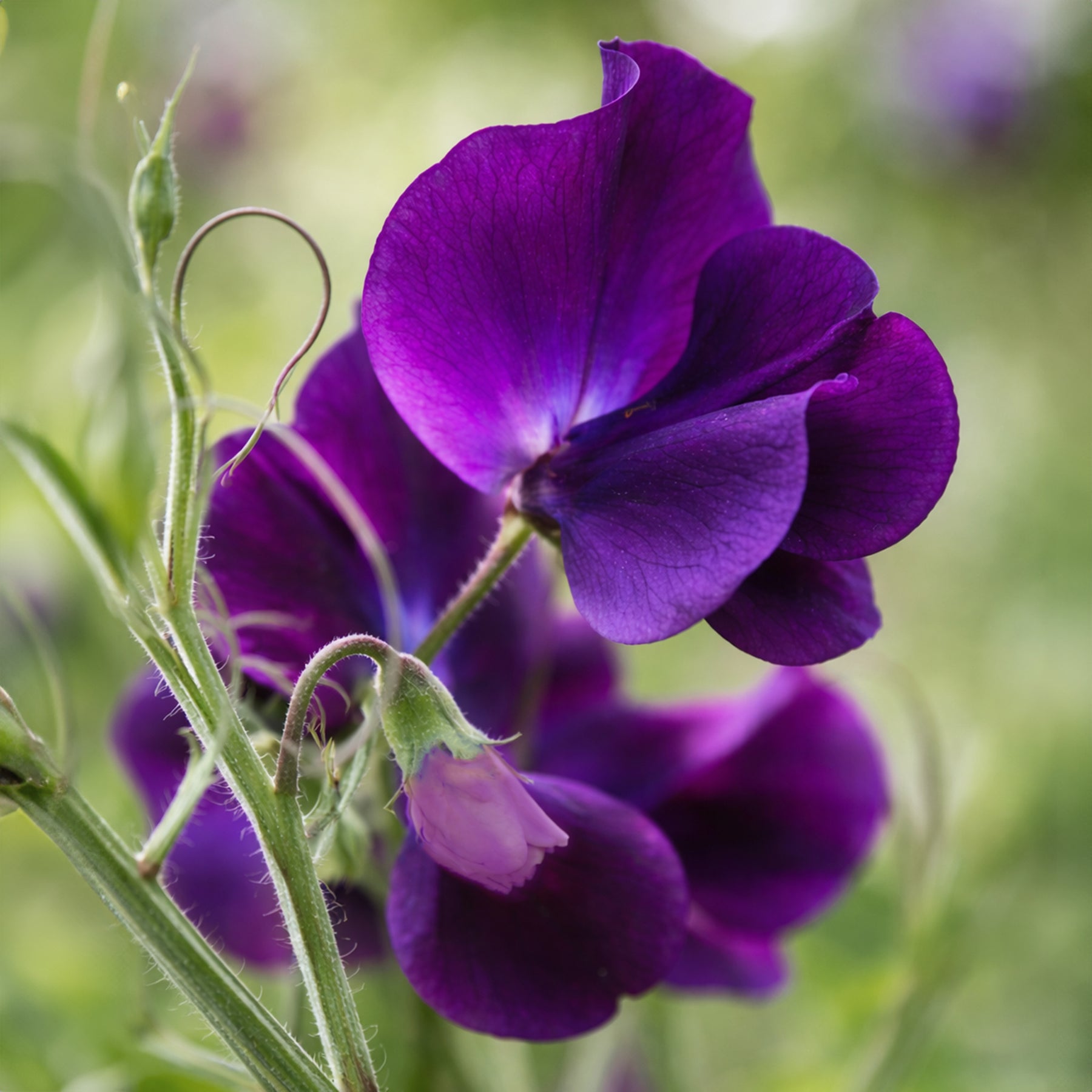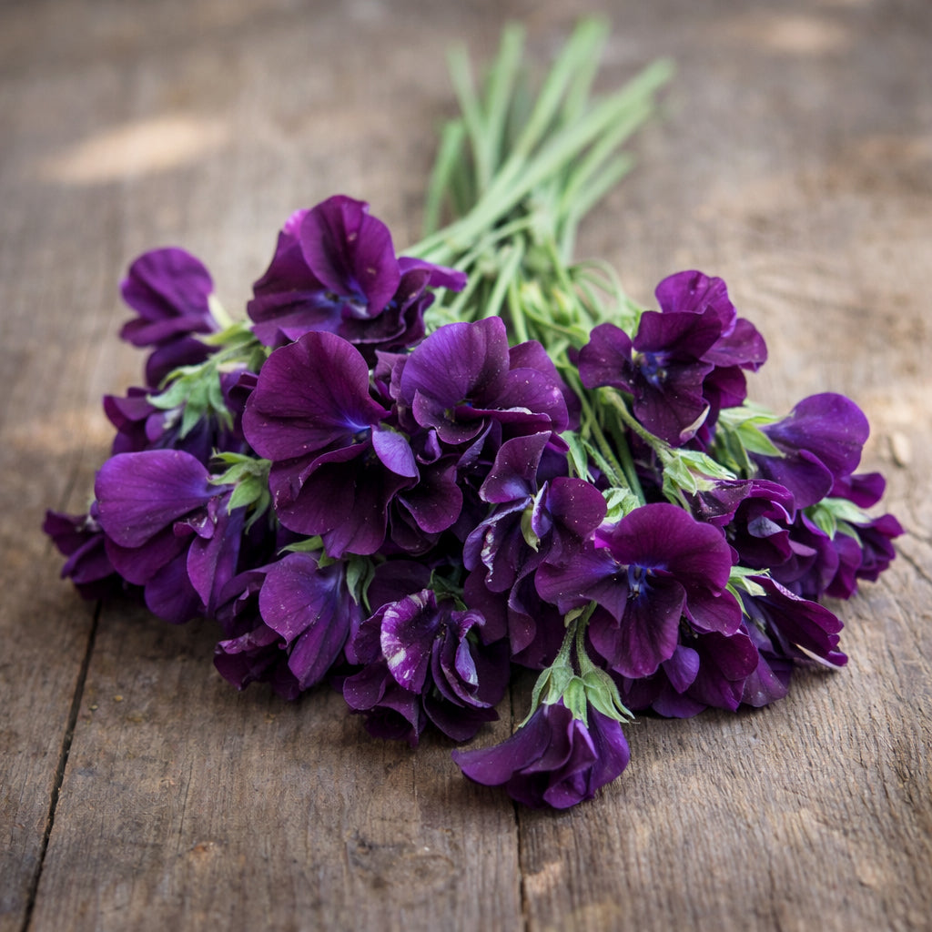 Die Duftwicke Royal Navy Blue ist eine außergewöhnlich elegante Sorte mit tief dunkelvioletten, fast samtig wirkenden Blüten. Ihre intensive, klare Farbgebung macht sie zu einer der ausdrucksstärksten Duftwicken überhaupt. Die großen, gewellten Blüten sitzen zahlreich an kräftigen, langen Stielen und verströmen den typisch süßen, klassischen Duft der Lathyrus odoratus.