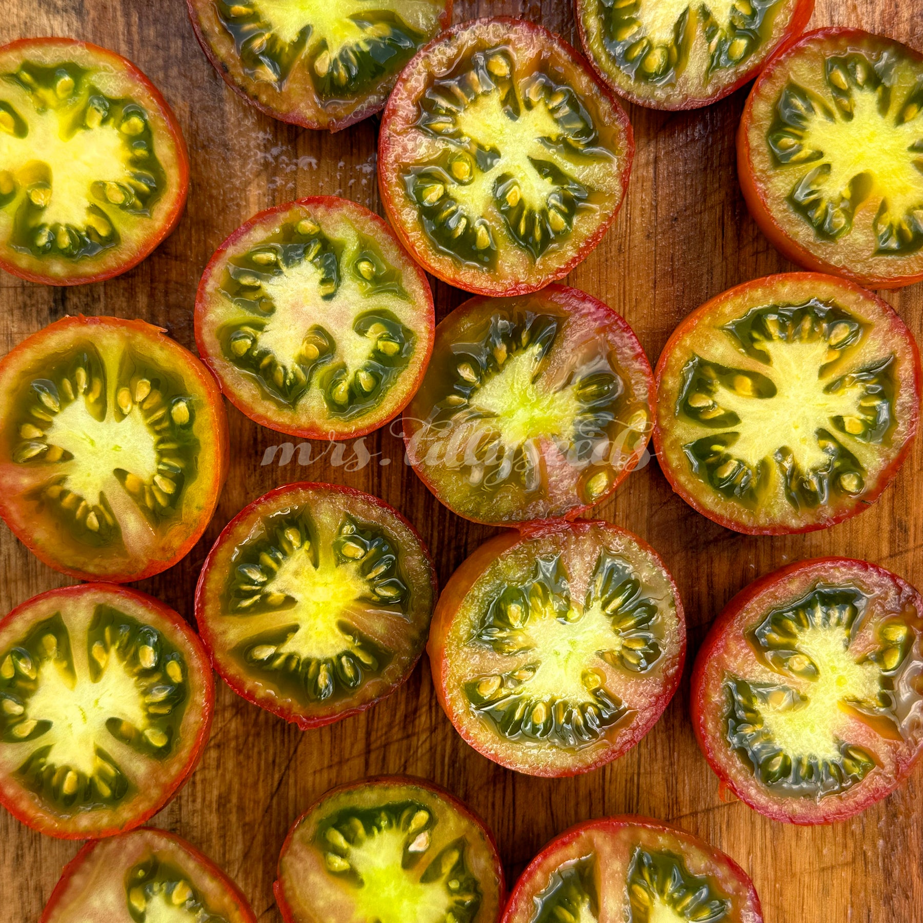 Diese Sorte stammt von Wild Boar Farms in Kalifornien – einer Züchterei, die bekannt ist für ihre Liebe zu ungewöhnlichen Farben und außergewöhnlichen Aromen. Genau das spürt man auch hier: Der Geschmack ist so vielschichtig, dass man ihn kaum in Worte fassen kann – süß, würzig, leicht säuerlich und immer wieder ein wenig anders, je nach Frucht und Reifegrad.