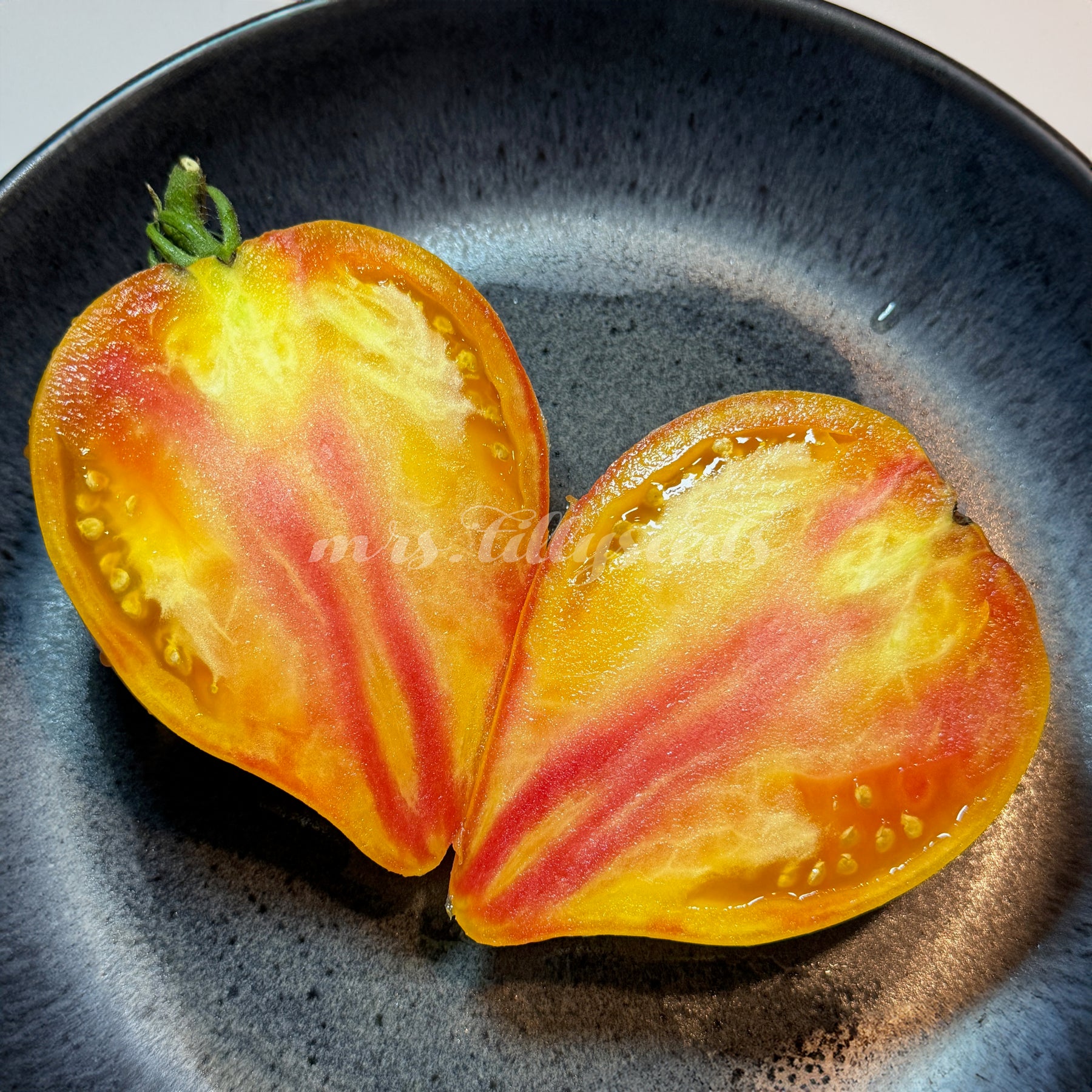 Ihren Ursprung hat sie in Russland, wo sie als Hybridsorte entstand. Was sie zu etwas Besonderem macht: Leidenschaftliche Züchterinnen und Züchter haben sie über viele Generationen hinweg selektiert – immer gezielter, immer stabiler. Das Ergebnis ist eine F7-Generation, die heute als samenfest gilt. Hinter dieser Sorte steckt nicht eine einzelne Person, sondern eine ganze Gemeinschaft von Menschen, die genau das gleiche wollten wie du: eine verlässliche, wunderschöne Tomate, Jahr für Jahr.
