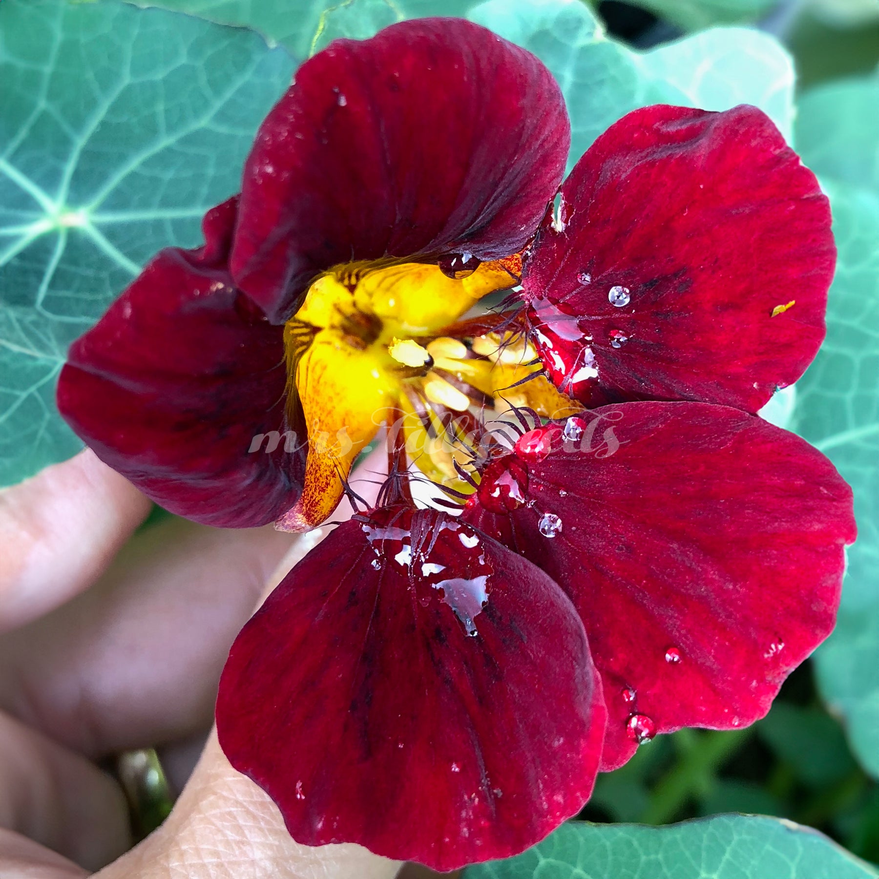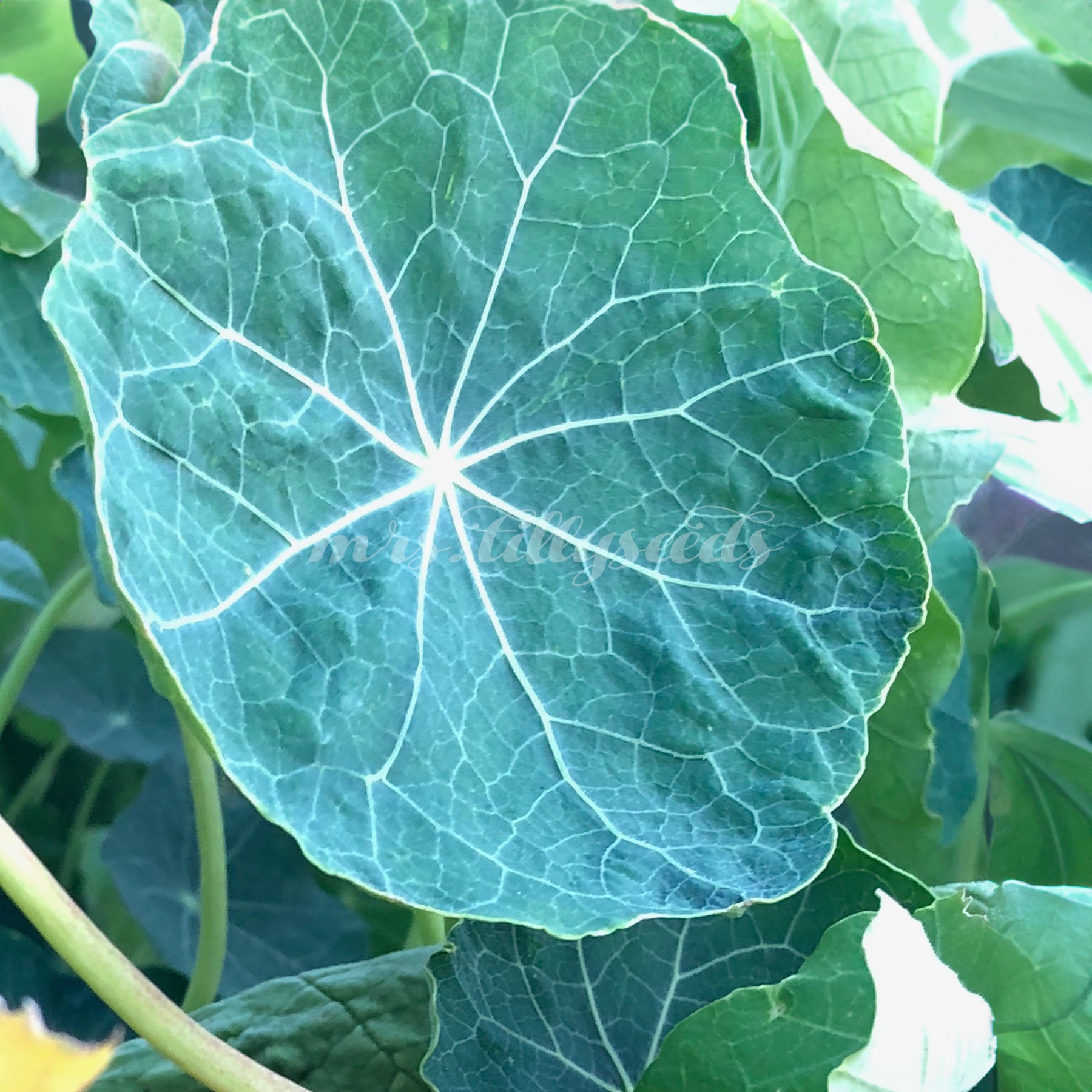 Die Blüten dieser Sorte können auf Fotos unterschiedlich wirken. Empress of India besitzt besondere Pigmente, die von Kameras nicht vollständig eingefangen werden können. In natura erscheinen die Farben deutlich tiefer, wärmer und lebendiger als auf den Bildern. Besonders charakteristisch – und nur bei sehr wenigen Kapuzinerkresse-Sorten zu finden – ist zudem das dunkle, teils purpurfarbene Blattwerk, das den intensiven Blütenfarben eine außergewöhnliche Tiefe verleiht und diese Sorte im Garten besonders edel wirken lässt.
